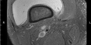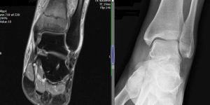 Female, 45. Started running 4 months ago. Gradually building distance. 3 week ago developed significant ankle swelling, pain and difficulty weight bearing after an 8 mile run. No history of injury X-ray – NAD Exam Ankle swollen Tender on palpation over left medial malleolus and along tibial shaft. MRI Coronal Saggital T1 There is an undisplaced [...] Read more